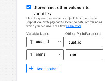 You can choose to store the values of the cust_id and plan on the trigger action block.