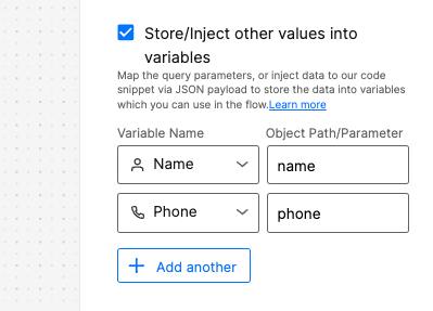 If you want to send external data to the chatbot, you can use this option. Once enabled, you can map the fields that contain the value with the Sopro variable.